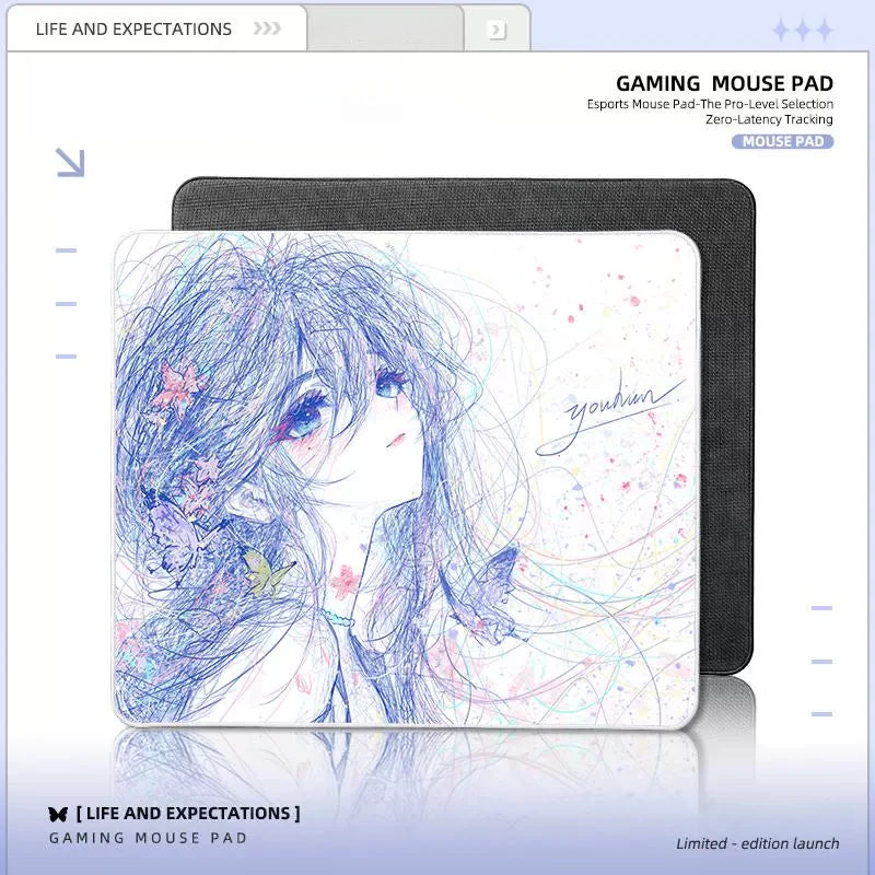 Waterproof micro-fiber surface for stain resistance, natural rubber base delivers non-slip stability, inspired by anime artistry. Combines otaku aesthetics with durable performance for gaming/office use.